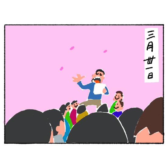JUGEMテーマ:絵日記★ 砧公園で花見でした。 桜の下にシートを敷いて、食べて、人によっては飲んで などという花見は 人生で初めてではなかろうか。 隣はお歌を歌う明るいおじさまたちでした。 飯田研人のHPはこちら(kentoiidaillustrations.tumblr.com)です。