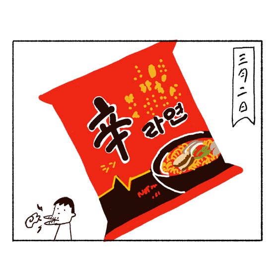 JUGEMテーマ:絵日記★ 録画してた 2週前のタモリ倶楽部をみて 食べたくなったので辛ラーメンを食べた。 飯田研人のHPはこちら(kentoiidaillustrations.tumblr.com)です。 お仕事のイラストはそちらです。