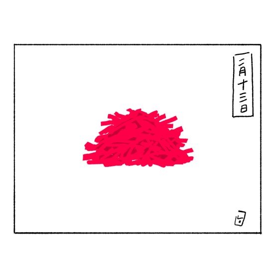 JUGEMテーマ:絵日記★ 紅しょうが。 週末お好み焼きをやった時の残り。 飯田研人のHPはこちら(kentoiidaillustrations.tumblr.com)です。