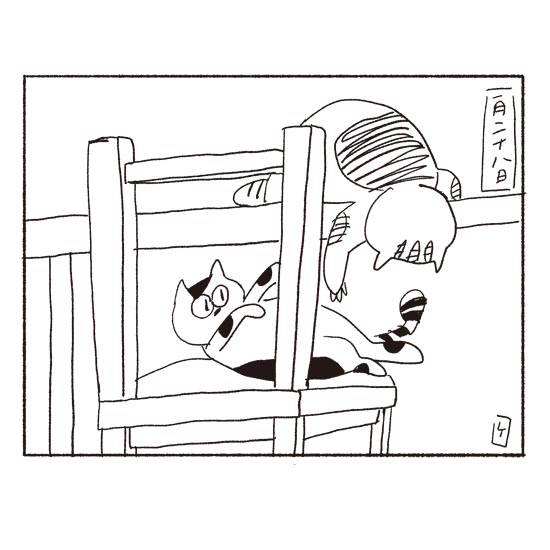 JUGEMテーマ:絵日記★ この冬の間は 机の上 vs 椅子の上の ファイトを毎日やっております。 上下はいろいろ。 机に乗った方から仕掛けているようです。 飯田研人のHPはこちら(kentoiidaillustrations.tumblr.com)です。