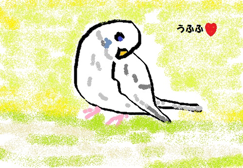 JUGEMテーマ:イラスト JUGEMテーマ:絵日記★ 今日は、しろちゃんのイラストを描いてみました。拙いですがどうかご覧下さい。 我が家のしろちゃんはお米を食べるとこんなしぐさをします。笑っているようです。 そのあと必ずまつげをちょこちょこ触りにお米をあげたひとにお礼しに行きます。 実に愛情深いインコです。