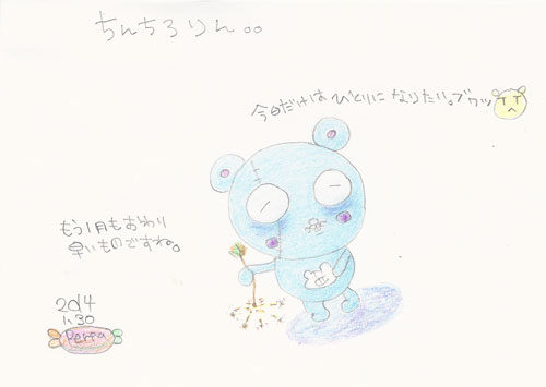 オレは灰になっちまったんだよ、真っ白になぁ〜ダス(x_x;) 昨日の気合いを入れて28時に全力投球したところ、見事にオケラのチンチロリン。。。2014年最初の月をアッツウ間に通り過ぎていきますダス(T▽T;) しばらく一人になって考えよう(汗)。このまま詩人にでもなるか出家でもしようかな?JUGEMテーマ:オリジナルキャラクターJUGEMテーマ:絵日記★