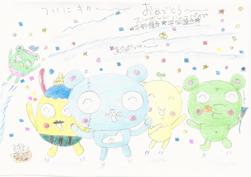 よっしゃ!よっしゃぁ〜!なんだか連日メダルラッシュ!バロンの得意競技スキージャンプの団体でブロンズメダル獲得!毎日メダルでやっとジャパンも盛り上がってきたダス!これは今日もなんか出そうな勢い? まだまだがんばれ!ジャパン! オラオリンピツクにとっぷりハマってるダス! JUGEMテーマ:オリジナルキャラクター JUGEMテーマ:絵日記★