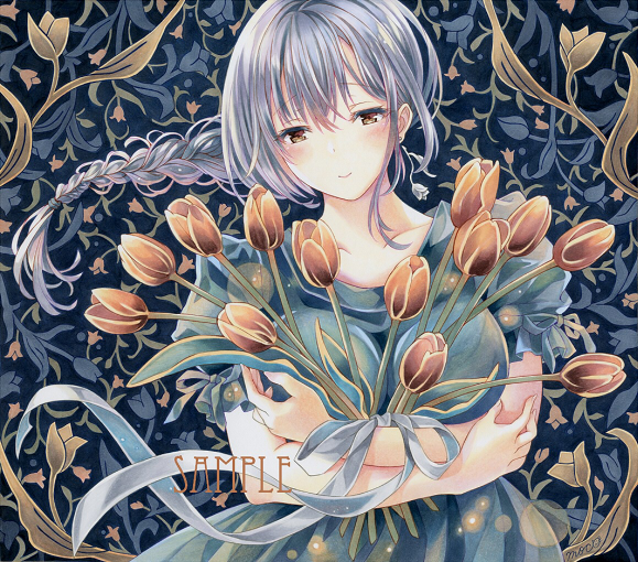 こんにちは、mocoです。 こちらのブログへお越しくださりありがとうございます。 今回は、和風月名シリーズ・第2集より、5月の作品を制作いたしました。 自由に解釈して見ていただけると幸いです。 「皐月の温もり」 夕暮れ時に、チューリップの花束を抱きしめる銀髪の女の子のイメージです。 今回は、全体的に落ち着いた印象の作品になりました。 チューリップを優しく抱きしめる女の子の、穏やかな雰囲気が気に入っています。 今回の女の子は、伏し目になった...