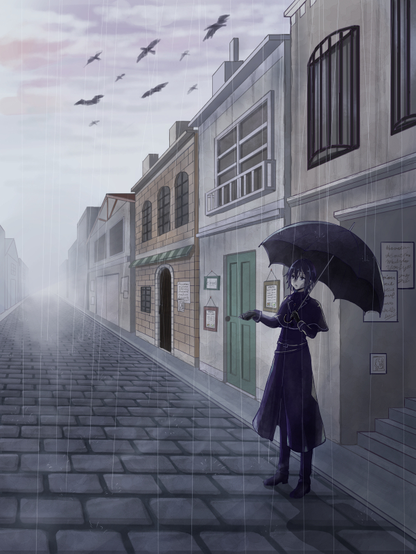 JUGEMテーマ:お絵描き 意外と早く出来ました。 今月3枚目になります。 雨の中、黒い傘をさして佇む青年。 使用ソフト:CLIP STUDIO PAINT EX 所要時間:14時間 どんよりと暗い絵になってしまいましたね。 あと建物ちょっと低すぎるかな。 私は雨わりと好きです。 経過です。 慣れないパース定規を使ってなんとか背景を描きました。 石畳は最初テクスチャ貼ってましたがやめて描きました。  ...