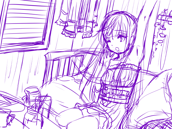 JUGEMテーマ:お絵描き 寝起きがテーマのイラストを描いています。 ちょっとジャンクスタイルなお部屋が好きです。 ラフ。 下絵と仮塗り。 人物線画。 +背景線画。 ここまで6時間くらい。 今月の一枚になりそうです。 ただいま、2種類のイラストを平行で進めています。 描きたいものが溜まりすぎたようです。 アナログとデジタルです。 どちらが先に仕上がるかわかりませんが、 とてもワクワクし...