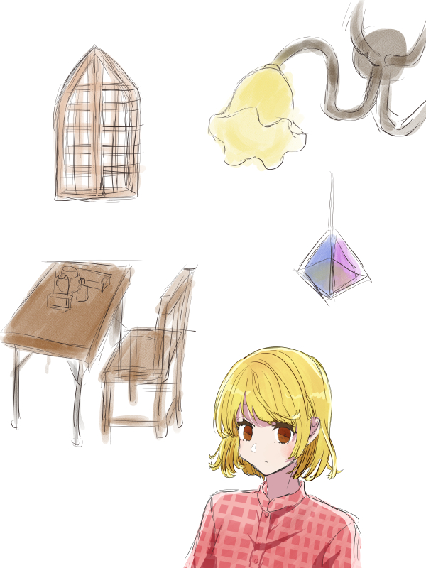 JUGEMテーマ:お絵描き 一枚絵を描くエネルギーがないです。 夏バテ気味というか、寒暖の差が激しくて体調を崩しかけているというか、 とにかく、あんまり元気じゃないです。 なんとなく印象だけでレトロっぽいモチーフとか、 こういうの描きたいなーの、アイデアの絞り出しというか、 気ままに筆を走らせて、完成とか気にしないでいます。 拙い。こんなの載せていいのかと思ったりもしたのですが、 生存確認として、なんか載せようとしてみます。 ちなみに使用ソフトは全部クリス...