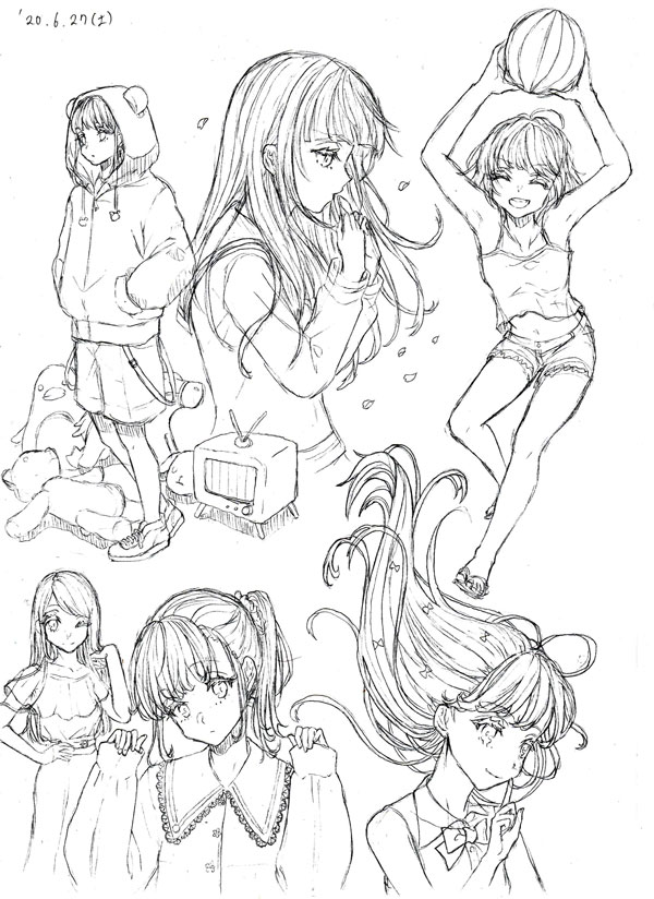 JUGEMテーマ:お絵描き 今月一枚絵を描いていない! 代わりにめっちゃラクガキしました。 土日かけて10時間半でA4コピー用紙6枚ぶんのラクガキをしました。 まずは1枚目、女の子のターン。 さりげなく野郎が混じっています。 野鳥のターン。シマエナガ可愛くて2回描きました。 記憶で描こうとしたけど失敗したやつ含めると3回描いていますね。 ふたたび女の子のターン。 右上がオリキャラのあ...