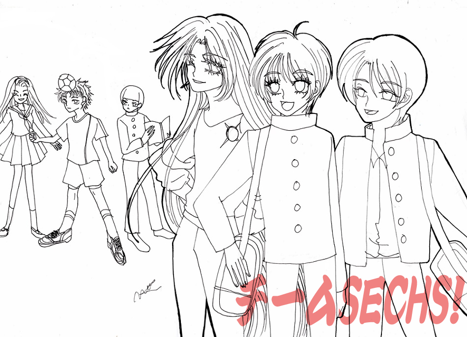 本日はイラストです(*^^*) 作品 SECHS(ゼックス)1 『北岡中学1年2組』 ペン入れまでです! 左から 聖架の双子の妹聖亜 サッカー少年の城崎海士(しろさきかいし) 頭のいい葉山純(はやまじゅん) そしてレッチェと 風見涼ちゃんと 聖架です! レッチェ以外は 北岡中学の1年2組、 同級生! みんな和気あいあいとしています(*^^*) ...