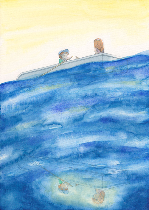 「水面下の気持ち」 B4サイズ、ホワイトワトソンボード、透明水彩 本当は・・・ ふたり展〜水彩の四季〜出品作品。 JUGEMテーマ:illustration