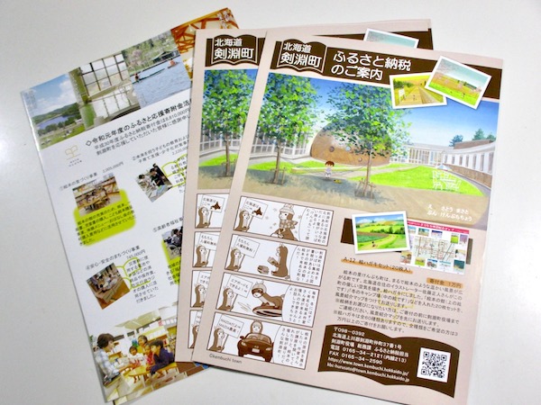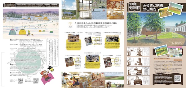 JUGEMテーマ:お仕事のイラストレーション&デザイン 先日もお知らせした剣淵町ふるさと納税だが、新しいパンフレットが 剣淵役場から送られて来た。 今回から登場したポストカードセットが表紙になっている。 剣淵町の風景イラストは2年前に絵本の館で開催した けんぶち絵本原画展「佐藤正人風景画展 こころのふるさと・けんぶち」 の剣淵60景、60枚の風景画から選べます。 中面には剣淵町の特産品が大集...