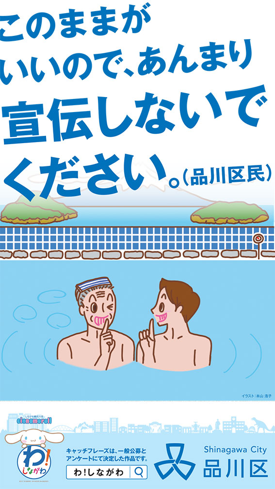 10/1から品川区のPR広告広告が始まりました。 品川区のPR広告のメインビジュアルのイラストを描かせて頂いています。 品川区のPR広告は 品川在住の方々から品川区のPRキャッチフレーズを応募し、 その中から決まった8種類の内容をイメージするイラストを描きました。 品川区ホームページ 産経新聞記事(10/4) 読売新聞(10/5) 東京新聞記事(10/11) 上記でも詳しく掲載されております。 ・JR京浜東北線中吊り貸切(1編成) <10月1日(月)〜28日(日...