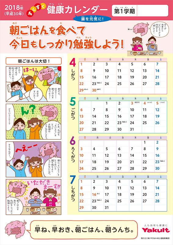 今日はあいにくの雨ですね。。。 ヤクルト「すくすく健康カレンダー」2018年1学期 のポスターの4コマ漫画のイラストを描かせて頂きました。 小学校の子どもたちに朝ごはんは大切! なぜ大切なのか、を訴求する4コマ漫画を描きました。 登場人物はキャラクターの腸くんと小学生のお姉ちゃん、弟です。 腸くんがナビゲーターになり、健康のことを教えてくれます。 とても可愛いポスターの仕上がりに私もとても嬉しいです。 小学校の廊下に学期ごとに飾って下...