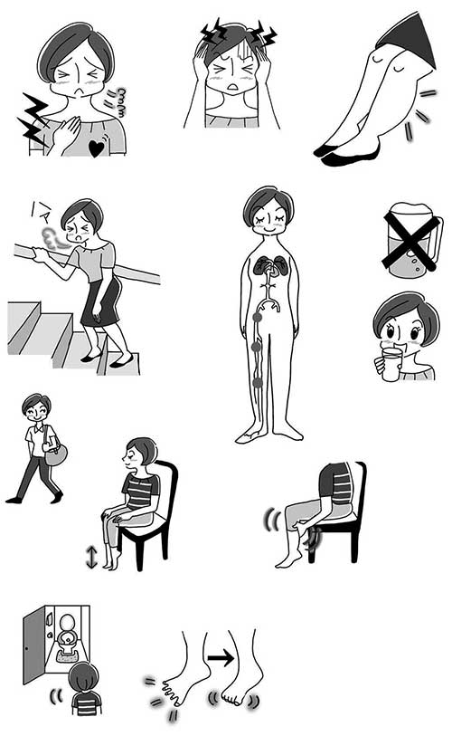 小学館発刊 女性誌「女性セブン」06月28日号で エコニミークラス症候群を引き起こすアブナイ習慣 特集(p132〜134)で 高齢者の女性や病気、健康に関わるイラストを 沢山描かせて頂きました。 こんな症状が出たら要注意では 胸痛、頭痛、むくみ、呼吸困難に なっている女性のイラスト エコノミークラス症候群が起こる仕組みのイラスト エコノミークラス症候群にならない&死なない 3つの対策では お酒を飲まない、水をこまめに飲む、毎日歩く習慣 の挿絵  ...