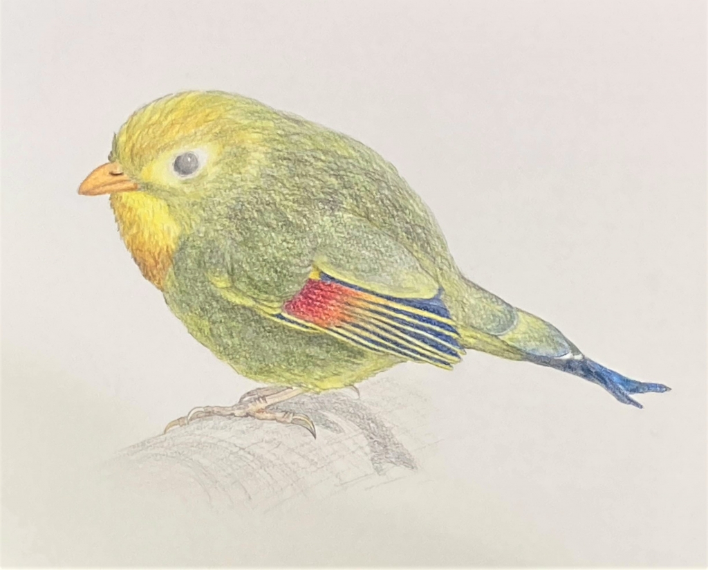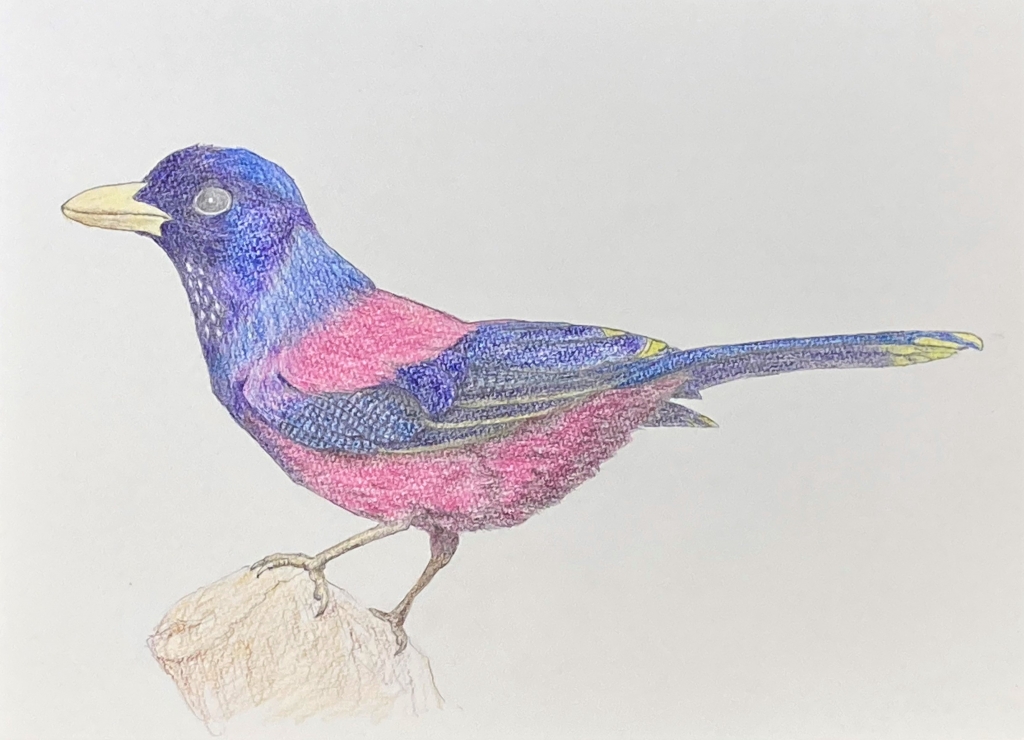 JUGEMテーマ:ギャラリー カケスという鳥がいますね。 いろんな鳥の鳴き声を真似できる、あの器用な鳥です。 これは、その中でも「ルリカケス」という、世界の中でも 奄美大島周辺にしかいないという、珍しいもの。 鳥の図鑑を見ていて、たまたま目に留まったから描いてみよう、と 思ったものの、意外に苦労しました。 荒い画用紙の面の上に、どうやって鮮やかな色合いと羽の風合いを 出そうかと。 少し描いて、3日くらい頭の中で考えて、編み出した描き方で仕上げ...