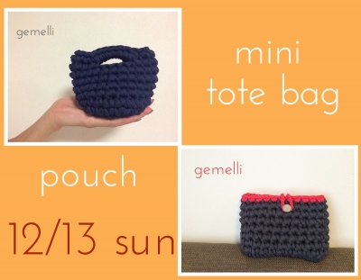 ******満席となりました。ありがとうございます。****** Zpagetti ワークショップ 11月のワークショップに続き、12月もポーチとミニミニトートの製作になります。 12月は午前と午後の内容を入れ替えて行ないます! 11月ご予定の合わなかったかたもぜひこの機会にご参加くださいませ 12/13(日) 11/15(日) 13:00〜予約受付開始です 11:00〜14:00 《ミニミニトート》 丸底につくり、持ち手の付け方も学べます! 参加費:¥4000 &nbs...