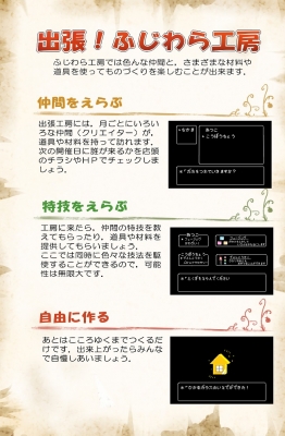 JUGEMテーマ:アートワークショップ こんばんわ 今日は14:00に目が覚めました 工房長です. さすがにびっくりしました. さて今日は何をしていたかというと 新しいワークショップ企画を考えていました. そして告知用の何かをつくっていました. イベントの名前(候補)は 「出張!ふじわら工房」 ??? って感じだと思いますが よければ少しお付き合いください. まずふじわら工房というのは我々の屋号ですが 同時に来年あたりに開く予定の フリーのレンタル工房 の名前でもあります. いろんな...
