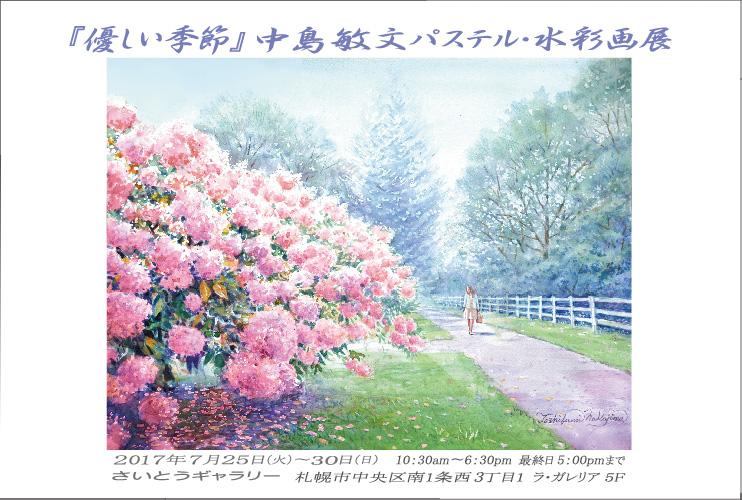 『優しい季節』中島敏文 パステル・水彩画展 2017.07.25 Thursday JUGEMテーマ:個展 『優しい季節』中島敏文 パステル・水彩画展 ■ 会 期 :2017 年7 月25 日(火)〜30 日 (日) 1 0:3 0 〜1 8 :30 最終日 17:0 0 まで ■ 会 場 :さいとう Gallery 札幌市中央区南1西3丁目1 &nbs...