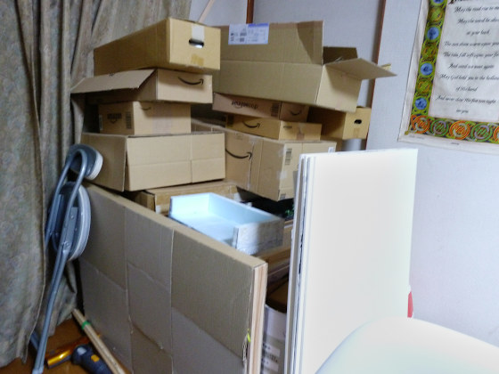 8月18日から23日の6日間、平塚市美術館で今年も個展を開催するつもりで日々準備をすすめています。 内容としては昨年同様、創作人形、ジオラマ、ドールフォトといったところがメインになるかと思います。同じものではつまらないので、内容の1/3ぐらいは入れ替える、あるいはリメイクするつもりでいます。 完成したものは、こんな感じでリビングの片隅に少しずつ積み上げられています。 荷物の山の大きさは搬入に使用する我家の軽自動車の荷物スペースと同じサイズ、要するにここで積み込み...