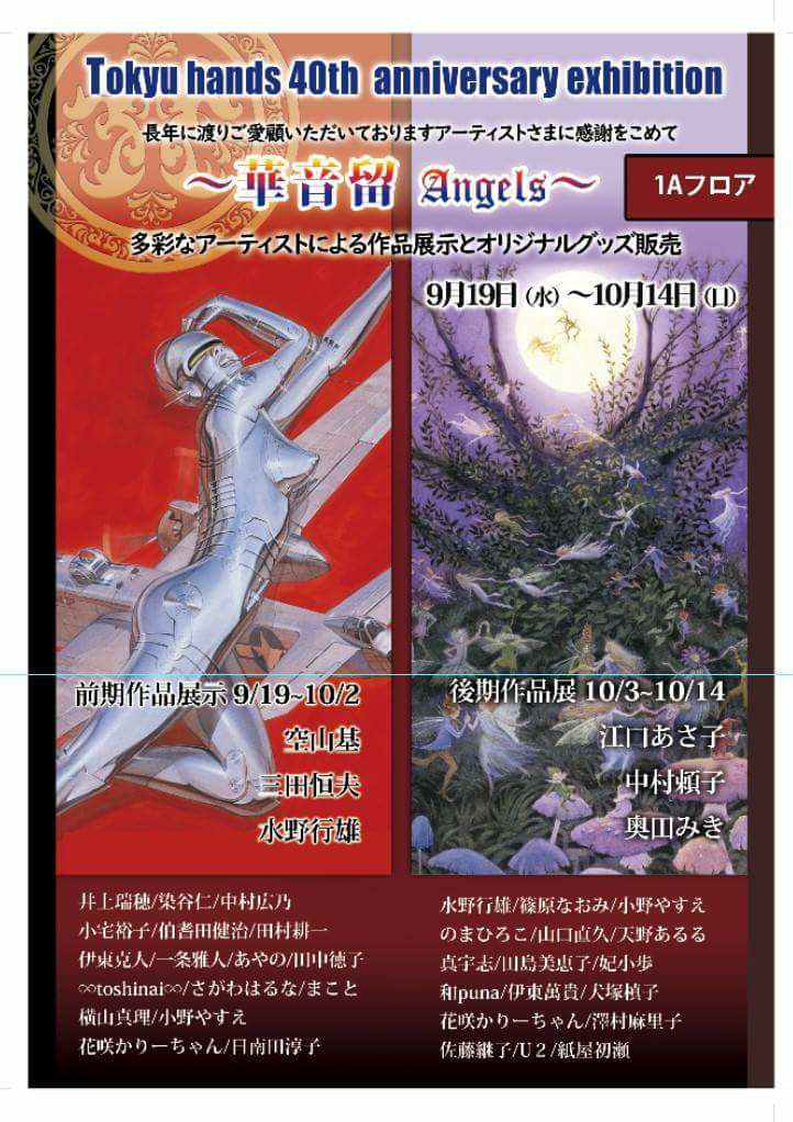 JUGEMテーマ:展覧会の告知をしよう! 〜ギャラリー華音留<かおる>〜 ⭐東急ハンズ渋谷店さまのプロデュースをさせていただきます⭐〜 ***東急ハンズ渋谷店様 40周年記念展*** 会期 9月19日〜10月14日 前期と後期に分けて展開です。 アートの素晴らしさをご覧頂けましたら。 いつもの『B2C』ではなく 一階入り口『 ?A』ですので お間違えなく。 絵を間近に 手で(魂で)作り出す 素晴らしい筆使いを 是非ご覧くださいね。 お越しをお待ち致します❤ ...