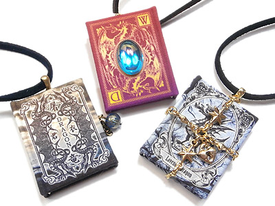 JUGEMテーマ:展覧会の告知をしよう! 子猫堂さんの4月の企画展『ドラゴンの魔法世界展』開催まで、1週間を切りました! 上写真は、今回のために新作した竜の魔法書ペンダント全3種です。 真ん中は「懸賞金つき火竜の手配書」になります。完成品はブログ初登場♪ 鮮やかな装丁が目を引く一冊となりました。 表題の通り、懸賞金がかけられた悪いドラゴンのリストというコンセプトです。 発想はゲームのモンハンからです(ちなみに私は太刀使いです・笑) 裏表紙のウ...
