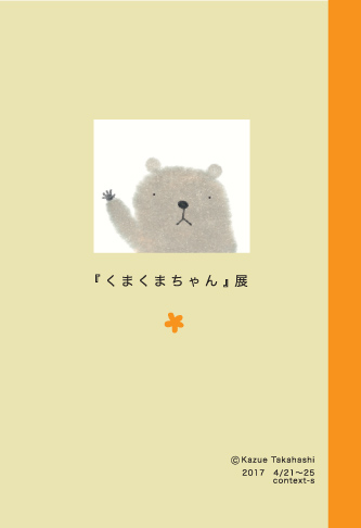 JUGEMテーマ:展覧会の告知をしよう! 絵本「くまくまちゃん}(高橋和枝・作/ポプラ社)シリーズの15年ぶりの新作くまくまちゃん、たびにでる」が出来上がりました。 新装版として甦った既刊「くまくまちゃん」「くまくまちゃんのいえ」2冊も合わせた3冊同時の刊行を記念して原画を展示しながらの展覧会を開きます。ぎこちない、いとおしい、くまくまちゃん。どうぞ会いにいらしてください。 4月21日(金)〜25日(火)まで 13:00〜19:00(最終17:00) 21日は11時か...