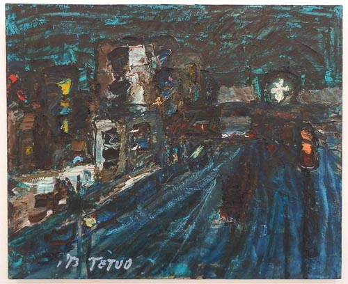 停車場B 山本鉄男 1973年 20号 山本鉄男の風景 再び 山本鉄男(1925−1994)の描く色は美しい、色彩感覚は天性のもので、努力しても手に入らない。描く対象は風景や顔、よくわからないモチーフも多々あるが、そのことはあまり問題じゃない。厳しい自然や社会の矛盾を描いた強い画面も、筆の痕跡を見つめていると、嬉しい嬉しいという描く喜びの声が聞こえる。 30年ほど前、何度かお目にかかったが、その頃、当方は若輩の上、未熟者。父親のような年齢の方に「マダム!」と...