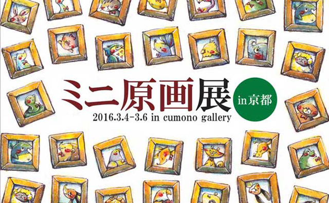ひ、冷えてますねぇ。。。春よ、春よこいっ!! さて、今週末に開催の「ミニ原画展in京都」出展のおしらせです! この企画展、92名参加されるそうです...!す、すごい!! 3/4(金)-6(日) 12:00-19:00 (最終日は16:00まで) cumono gallery 京都府 京都市 中京区 御幸町通 六角下る 伊勢屋町 341 京都しるく2F 【最寄り駅】 京阪電車「三条駅」より徒歩10分 阪急電車「河原町駅」より徒歩10分 市営地下鉄「烏丸御池駅」より徒歩15分 市営地下鉄「四条駅」より徒歩15分 ※ミニ原画は購入後そのままお持ち...