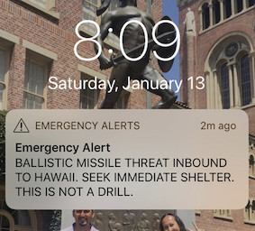 JUGEMテーマ:アメリカに関するニュース 米ハワイ州で13日朝、弾道ミサイルの脅威が迫っているとして、避難を呼びかける警報が住民の携帯電話に誤送信された。その後、人為的ミスだと確認されたが、昨年、北朝鮮による弾道ミサイル発射実験が相次いだこともあり、一時緊張が走った。 警報メッセージは午前8時7分、「ハワイに向けた弾道ミサイルの脅威。すぐに身を隠して。これは訓練ではない」という内容で送られた。同州の緊急事態管理局は約10分後にツイッターで「ハワイへのミサイルの脅威はない」と呼びかけ、住民の...