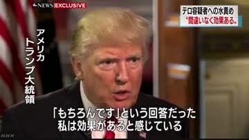 JUGEMテーマ:アメリカに関するニュース ドナルド・トランプ(Donald Trump)米大統領は25日、米ABCニュース(ABC News)のインタビューで、(略)イスラム過激派組織「イスラム国(IS)」が米国人の首を切断して殺害するなど数々の残虐行為を行っている現状においては「火に対しては火をもって戦う」必要があると答えた。「連中がわが国の国民やその他の人々の首をはねているとき、中世以降聞いたこともないような真似をISIS(ISの別称)がしているときに、水責めについて強い思いがあるかと聞くのか? 私の考えでは、火に対し...