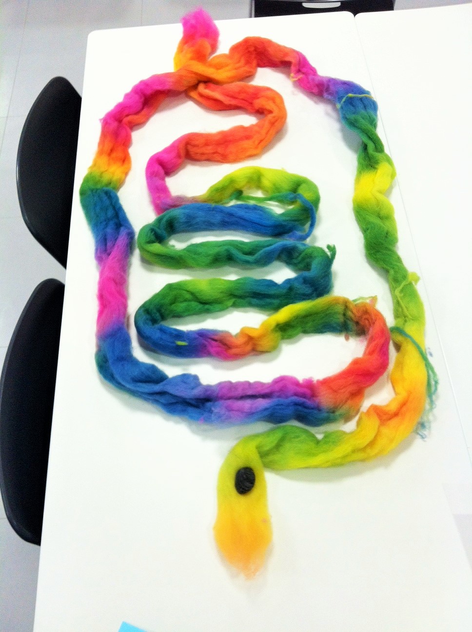 JUGEMテーマ:科学 〜上行結腸、横行結腸、下行結腸、S状結腸、直腸日記〜じゃじゃーん! 腸です。科学館での大人向け講座の準備中に、カラフルな羊毛フェルトを使って、アシスタントのHさんがお戯れあそばされました。さすがです。理系っぽい発想です。直腸に結石があって痛そうですが、これも講座で使う材料なのです。ちなみに、テーマは「内臓」ではなくて「羊」です。さかさパンダの中の人が作った見本用のペーパーウェイトも、個人的には臓物(肝臓?)っぽいと思いますが・・・「そう思っているのは、 さかパンさんだけだよ。...