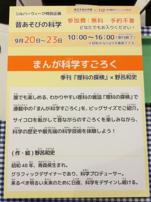 JUGEMテーマ:科学〜TISFってなに?東京国際科学フェスティバルのことです日記〜東芝未来科学館×東京国際科学フェスティバルTISFコラボ企画が、9/20〜23のシルバーウィークイベントで開催されます。期間中毎日2回実施される「サイエンス茶房」は参加対象60歳以上で既に予約で満席!サイエンスカフェ史上初のシニア限定のサイエンスカフェですよ。わくわく!「さかパンは今回はTISF企画やってないの?」と、最近よく聞かれますが、「リカタンず」や「ほんとほんと」メンバーとして、ちゃっかり楽しんでいますのよ。TISFは1回目から6回...