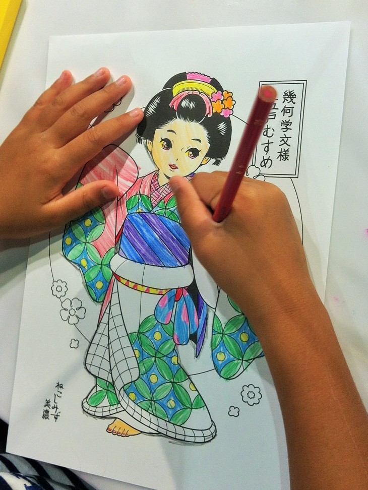 JUGEMテーマ:科学〜年代性別問わずみなさん熱中していました日記〜東芝未来科学館シルバーウィークイベント昔あそびの科学コーナーの「幾何学文様江戸娘ぬりえ」です。お手本の通りぬる人、好きな色を選ぶ人、様々です。お父さんと一緒に真剣に !ステキ ♪このぬりえは雑誌「ねこぱんち」でおなじみのねこしみず美濃さんによるシルバーウィークイベントのためのオリジナル作品です。シニアの方々にも、たくさんご参加いただいています。