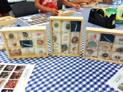 JUGEMテーマ:科学 〜みんなちがってもみんないいじゃんにっき〜 貝殻の標本作りの科学教室の様子です。右端が、さかさパンダの制作した見本です。参加者70名以上のうち、一人だけ標本ケースを縦型に使っているちびっこがいて感心しました。「縦にしてもいい?」と聞いてきたわけではなく、「縦の方がいいと思ったから。」そうしたそうで、その美意識と意思と勇気には感服です。八つの角がある角のような貝のヤカドツノガイ(八角角貝?)が、縦にまっすぐ配置されてかっこいいですね。21種類の貝の中から、好きな9種を選んで配置する...
