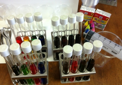 JUGEMテーマ:科学 〜16色作りました日記〜食用色素で、あるものを染めましたよ。 もともとあった色素の色は、レッド、イエロー、グリーン、ブルー、パープル、ピンク、イエローグリーン、スカイブルーです。新たに作った色は、プリティパープル、オレンジサンセット、ミントグリーン、ダスティローズ、グリーンアップル、アプリコット、ターコイズ、ラズベリーです。あー楽しい♪マコーミックの食品着色料 “NEON!” (2014/02/15)色、いろいろ (2014/02/20)