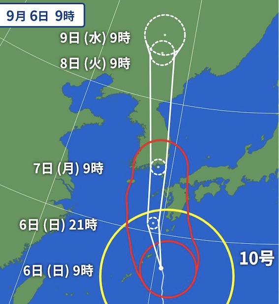 JUGEMテーマ:韓国ニュース 「超強力級」として国民を緊張させている台風10号の予想経路が当初より東側に移っている。このため韓国に上陸せず、東海岸側を通過しながら影響を与えると予想される。(略)台風10号は7日に韓半島を貫通する可能性が高いと予想されたが、経路が東側に移動しながら予想進路が大きく変わった。台風10号が韓国に接近する時点には西側の空気の影響を大きく受け、進行経路が東側にさらに移動すると分析される。(略) https://news.yahoo.co.jp/articles/f48dea62a2 6b340226fd7032832dc197...