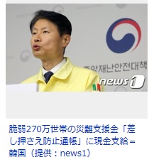 JUGEMテーマ:韓国ニュース 1000回の 旋回でもええ はよせんかい!? 元ネタ↓ 脆弱270万世帯の災難支援金 「差し押さえ防止通帳」に現金支給 自宅隔離・無断離脱者にも支援する方向へと旋回‐韓国 News1 wowkorea.jp 5/1(金) 15:28配信 国韓国政府が新型コロナウイルス感染症(COVID-19)の影響で、経済的支援が急がれる脆弱階層...