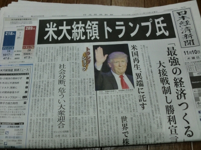 JUGEMテーマ:アメリカ大統領選挙 周南市 (徳山・新南陽・鹿野・熊毛) 下松市・光市・周東町 玖珂町・柳井市の皆様 実印・銀行印・会社印・ゴム印 名刺・封筒、ハガキ印刷・Tシャツプリントの店 和光スタンプ です。 実印は、親から子供への 大切な贈りものです! 八兵衛です。 昨日11月10日の新聞です。 アメリカ大統領選挙で世界中のマスコミの予想をくつがえして トランプ氏が次...