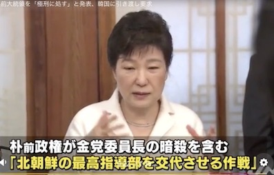 JUGEMテーマ:北朝鮮 北朝鮮は28日、韓国の朴槿恵前大統領が金正恩労働党委員長の暗殺を計画していたとして「極刑に処す」と発表し、韓国側に朴前大統領の引き渡しを求めました。(略)朴前政権が金党委員長の暗殺を含む「北朝鮮の最高指導部を交代させる作戦」を計画していたと主張。「特大型の国家テロ犯罪」だとして朴前大統領と韓国の情報機関・国家情報院の前院長を「極刑に処す」と述べました。「我々の最高首脳部を狙った特大型国家テロを計画した犯罪者を極刑に処すことを厳粛に宣言する」(朝鮮中央テレビ)その上で...