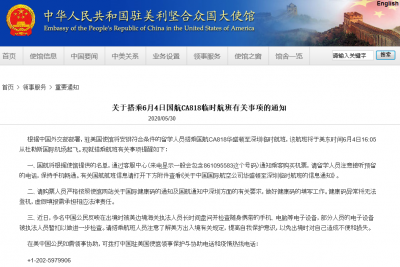JUGEMテーマ:アメリカに関するニュース JUGEMテーマ:中国 JUGEMテーマ:中国ニュース 今日は「今年6/4に中国駐米大使館がエアチャイナCA818便の臨時便を飛ばした理由」と題して論説します。 まず中国駐米大使館のホームページに掲載のCA818便を飛ばすことを通知しているサイトご紹介します。 <中国駐米大使館ホームページの抜粋(リンク先)> (出典:中国駐米大使館のホームページより) 次に2カ月以上前の記事ですが、ブルームバーグ...