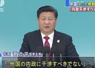 JUGEMテーマ:中国ニュース 中国の習近平国家主席は16日、浙江省烏鎮で開幕した「世界インターネット大会」での演説で「ネット空間は『無法地帯』ではない。ネットユーザーが意見表明する権利を尊重するだけでなく、法律によって良好なネット秩序を構築しなければならない」と述べ、ネット規制を正当化した。また「(サイバー攻撃による)企業機密窃取も政府に対するハッカー攻撃も関連法律に基づいて断固取り締まるべきだ」とした上で「サイバーセキュリティーにダブルスタンダード(二重基準)があってはならない」と強調、中...
