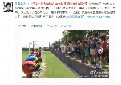 JUGEMテーマ:中国ニュース 2014年8月23日、中国メディア・鳳凰網は、日本の少年サッカー大会で、敗れたチームの選手が涙を流しながらも整列して観客に深々とお辞儀をする写真を掲載し、「子どもたちは応援に感謝の気持ちを伝えることを忘れず、観客も励ましの声と拍手で応えた」と報じた。 中国のネット上には、日本人の素養の高さを称賛する書き込みが相次いだ。(略)「日本人は普段の練習であれ試合であれ、最後にコーチ陣や保護者にお辞儀をして謝意を示すという。周りに誰もいなくてもそうするのが当たり前のようだ。素養と...