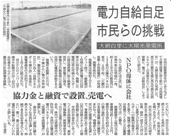 朝日新聞の千葉版に大網白里第1市民発電所のことが取り上げられました。5月23日付けです。クリックするとPDFをダウンロードできます。(森田)