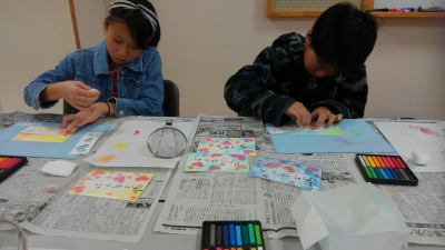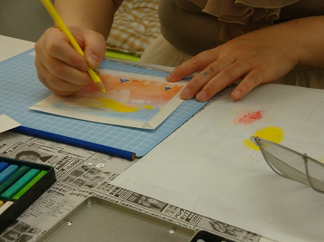 ムスメの卒論や就活、私の一時帰国などあり、 しばらくパステルは鞄の中で眠っていましたが、 久々に登場デス。 今回は、浦東・シャーマへ出張させていただきました。 夏休み中のChealseaちゃんとママのMikiさん。 お題は三種類用意した中から「花火」に決定! まずは、下地作り。 思うように色を塗ることができないと Chealseaちゃんは嘆いていましたが、そんなことなかったよ〜。 次の色塗りでは手や腕がまっくろくろすけになるので、 先にどんな花火にするか決めて、型を作りました。 どんな風に仕上がるか、...