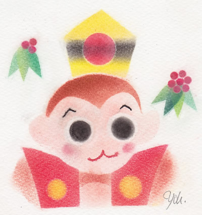 2016年は申年。 1月はおさるさんの絵にしようと決め、 京劇の孫悟空の顔に挑戦しかけましたが、 顔の少ない白地の部分に赤色や黒色の粉が散りまくって、 どうにもこうにも収拾がつかず、途中で断念。 で、こんなん描きました〜。 ムスメには顔がコワいと言われ、ウケがよくありませんでしたが、 私の中では大阪にいる5歳年下の弟の、幼かった頃の姿が重なり、 結構気に入っています。 (細くてちっちゃくて、目がくりんくりんだったのです当時は) ちょっとおすまし気味なのも、無意識のうちに弟を意識していたから...