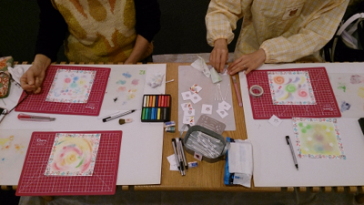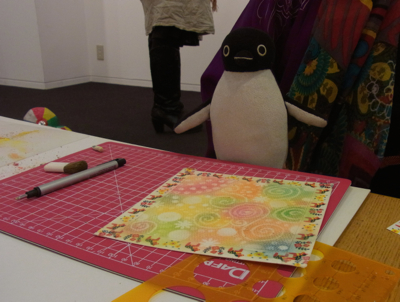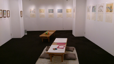 リクエストをいただいて急遽開催することにした 『指でくるくる〜パステルであそぼう〜』 体験者第一号は、 徳島から絵を観に来てくださったヤマキタセンセイ。 テーマは『まる』 会場のど真ん中のベンチをテーブルに、 床に座って描いているので、 どんどん人が増えて来て賑やかになっていく中、 センセイは黙々と絵を描き進めていかれます。 京都チックな色合いのまるが華やかな花を咲かせる中、 さらに消しゴムで愛らしさ倍増。 とっても乙女チックな夢の世界のような愛らしい作品が生まれました。 ...