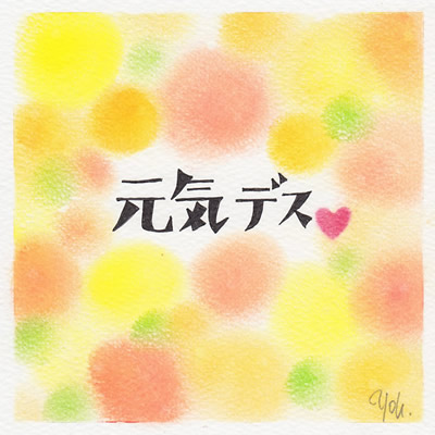 Facebookの「5日間アートチャレンジ」4日めは、メッセージカードらしきものを作ってみました。大人数のWSで使えるイメージです。「元気デス」絵はただただ「まる」を描き、中央の文字は、簡易レタリングで。紙はパステルアート標準の15センチ角。絵手紙はメッセージを筆で書かれることが多いですが、私はどうも筆を持つと緊張してしまうので、自分の好きなものをということでレタリングを選びました。そのため、文字はいったん線だけペン入れしておいて、絵を描き終えてフィキサチーフをかけた後に肉付け色入れをしました。「Hap...