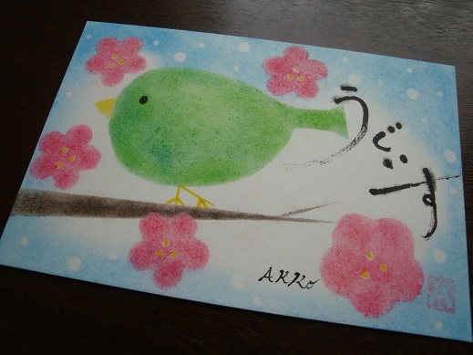JUGEMテーマ:パステルアート パステリア書オリジナルうぐいすです。 もう春はそこまで来ていますね 早く暖かくならないかなぁ。 応援お願いします。 人気ブログランキングへ パステリア書講座はこちらまで てらこや西谷 045-442-5489 http://nishiya.org/pasteria/