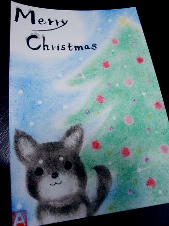 JUGEMテーマ:パステルアート またまたパステリア書でクリスマスカードを描きました。 今回は可愛いワンちゃんも一緒に イメージはうちのワンコなんですけどね 応援お願いします。 人気ブログランキングへ パステリア書講座はこちらまで てらこや西谷 045-442-5489 http://nishiya.org/pasteria/