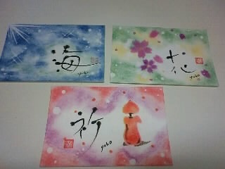 JUGEMテーマ:パステルアート 今日はパステリア書基礎講座の生徒さんがいらっしゃいました。 画像が悪く小さくすみません カメラを持って行くのを忘れてしまって古いガラケーで撮りました。 前回同様絵はスムーズに仕上げられました。 花が完璧ですね。 5枚の花びらはバランスが難しいのですが、完璧です。 書の方は相変わらず難しいとおっしゃっていましたが、とてもよい感じに仕上がっています。 次回から中級講座に入ります。 また楽しく過ごしましょう。 応援お願いします。 人気...